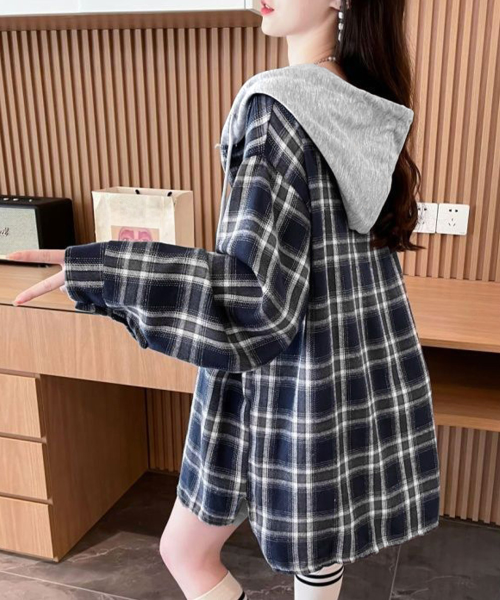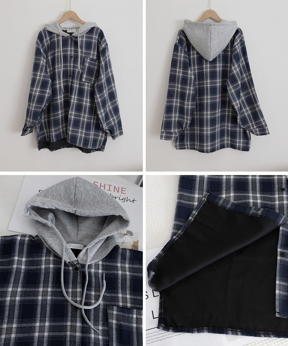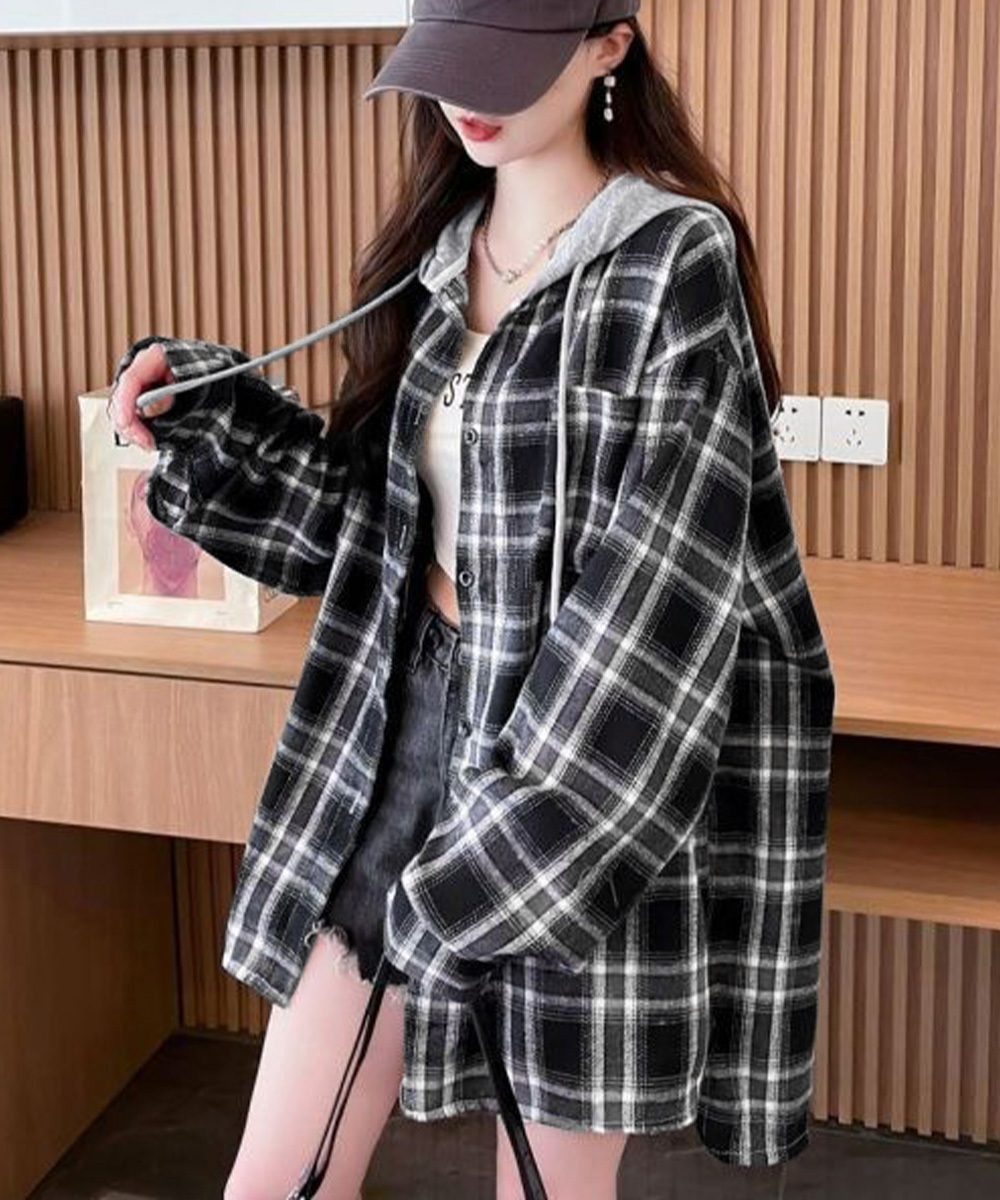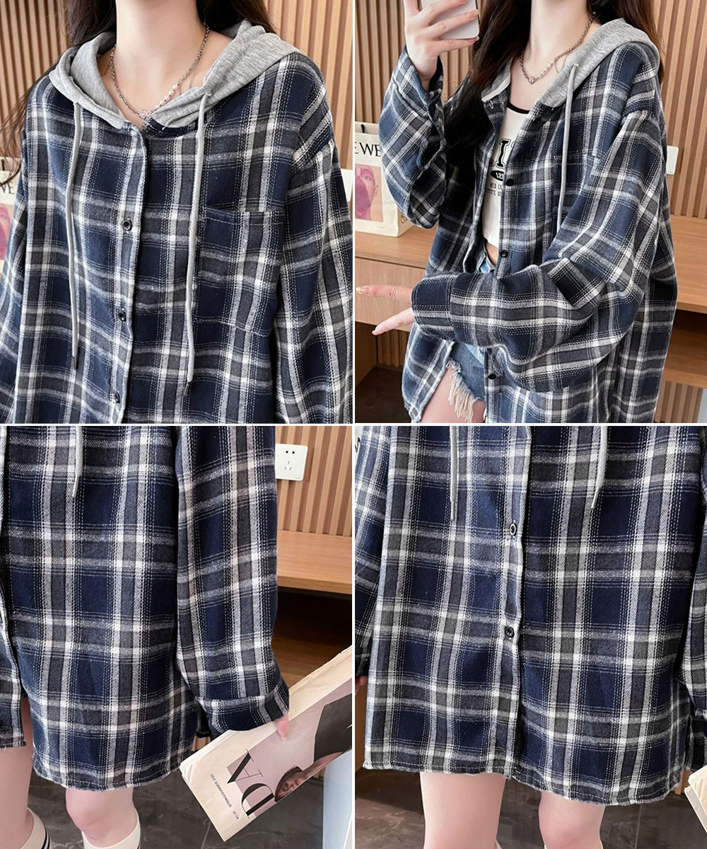 微起毛切替BIGフードシャツ オーバーサイズシャツジャケット ヴィンテージ チェックシャツ ゆったり ネルシャツアウター 起毛シャツブラウス 春秋ライトアウター ビエラチェック秋服 柔らかいビエラ素材で仕立てた、シーズンムード漂うチェックBIGシャツ。 カジュアルなフード付きデザインの切り替えディテールが目を引く、こなれ感たっぷりの一枚。 レイヤード次第でロングシーズン着回せるのもうれしいポイント。 春先はライトアウターに、初秋は一枚で主役に、冬はアウターの上からフードを出してもおしゃれに楽しめる一枚。 素材:ポリエステル85%+綿15% カラー:ブラック/ネイビー サイズ:ワンサイズ 着丈:前丈約75/後ろ丈約79cm 肩幅:約51cm 袖丈:約55cm ゆき:約80.5cm 身幅:約62cm 胸囲:約124cm 裏地:なし 伸縮性:なし 透け感:なし 生産国:中国 ※すべて平置きサイズです(採寸方法違いより、多少の誤差がございますので、ご了承ください)。 ※海外輸入品のため、商品の細部仕様は多少異なる場合がございます。予めご了承の上、ご注文お願い致します。