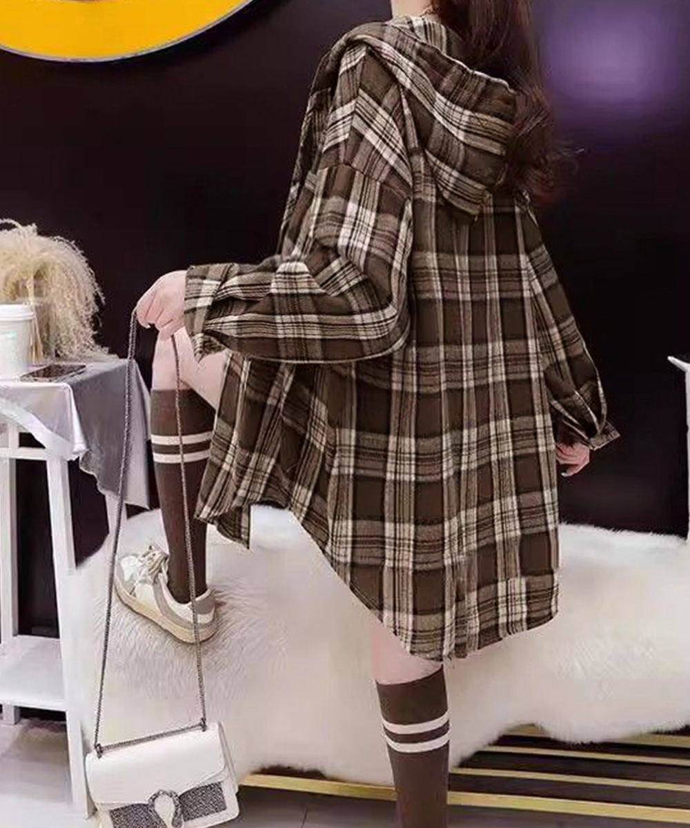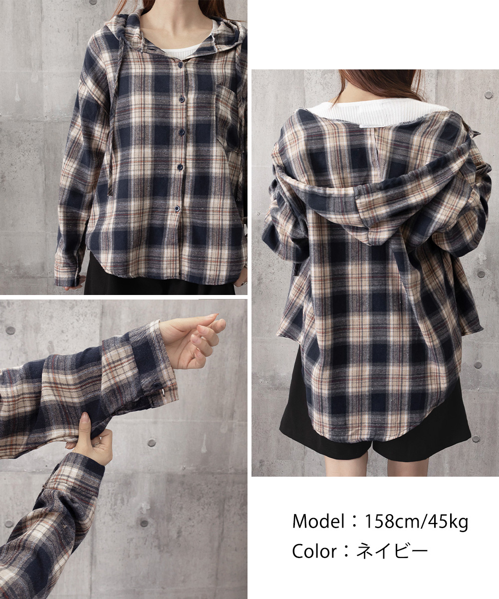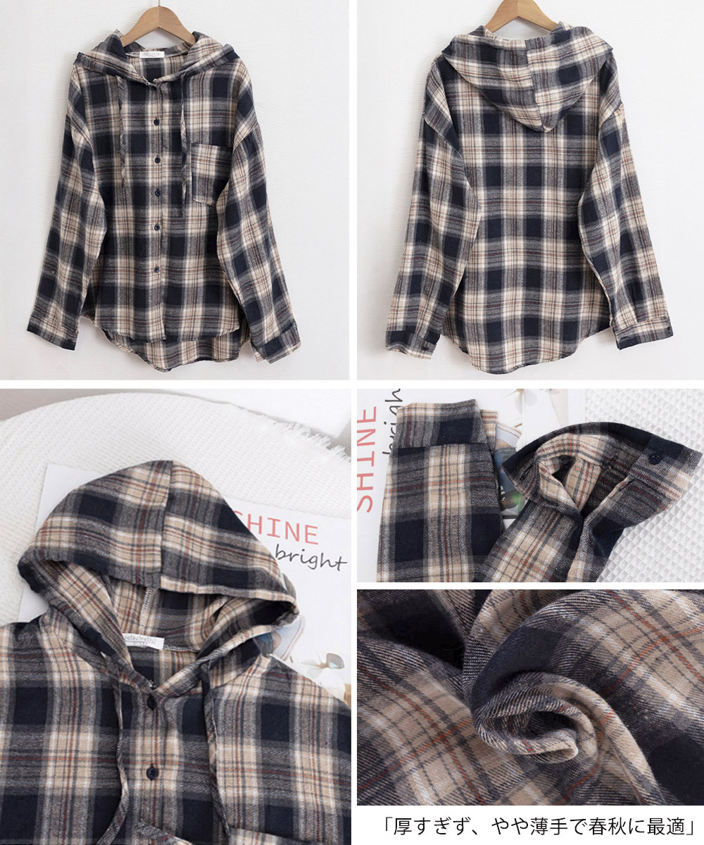 チェック服専門店のおしゃれなフード付きオーバーサイズシャツ。