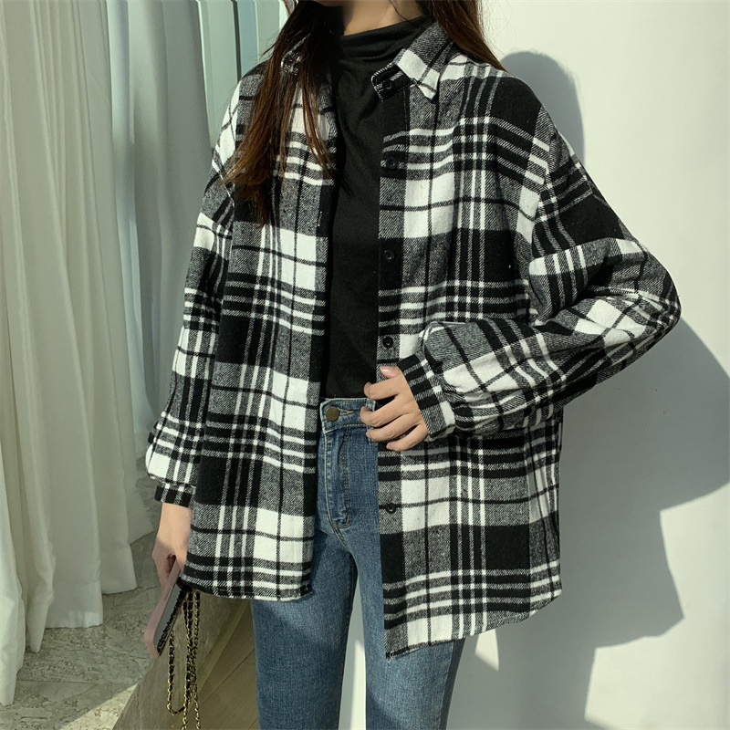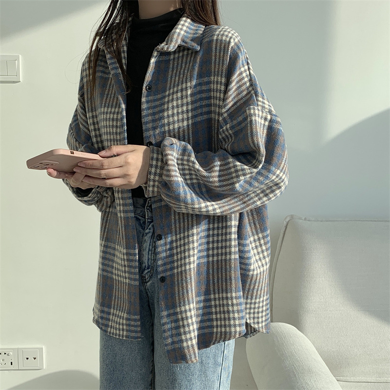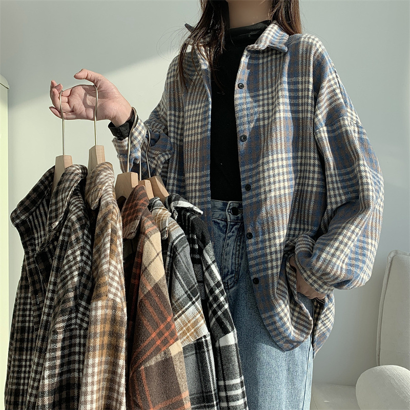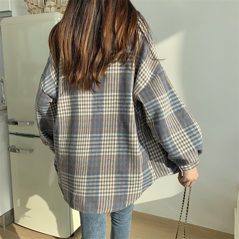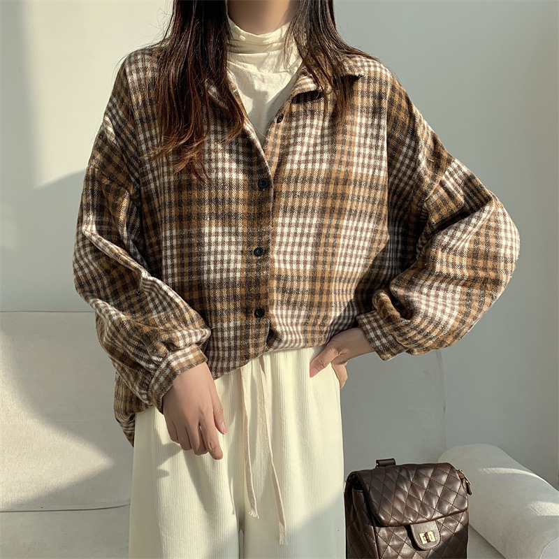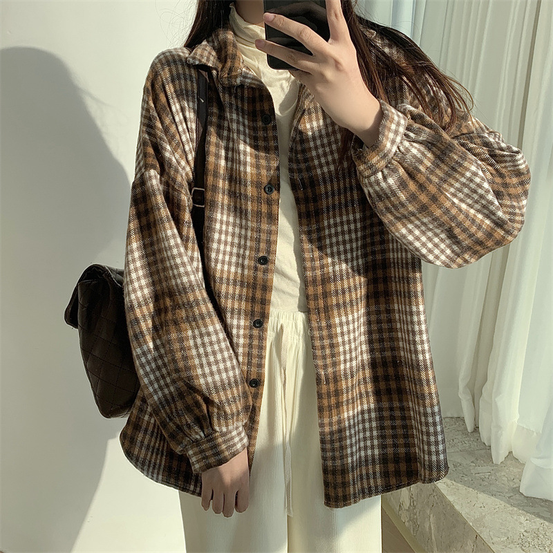 個性的なチェック柄が魅力的な長袖シャツです。
