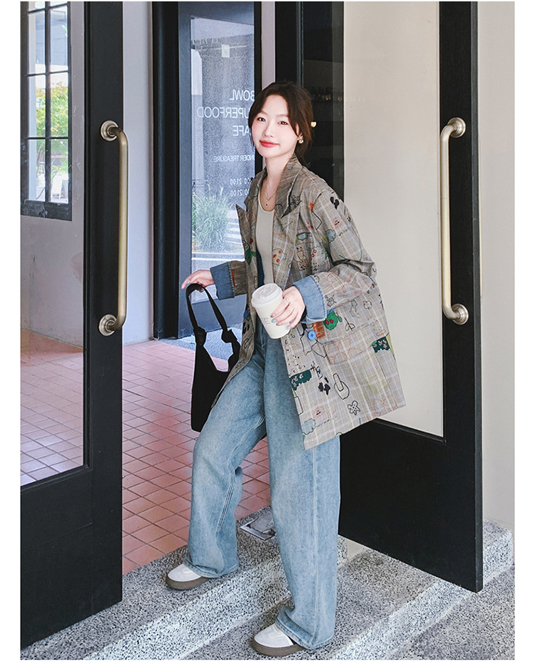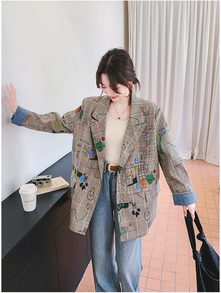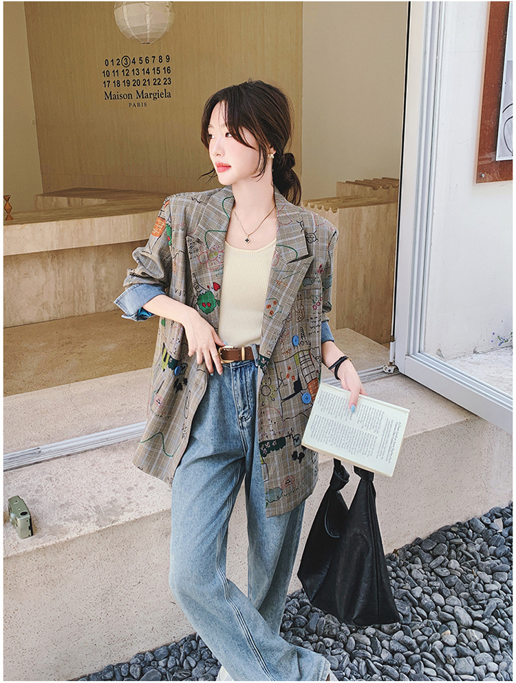 個性的なプリント柄が魅力的なチェック柄ジャケットです。
