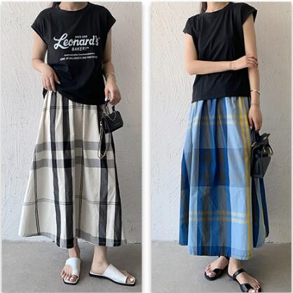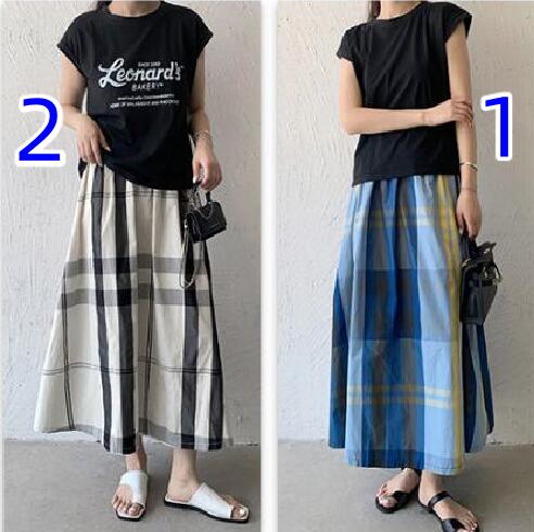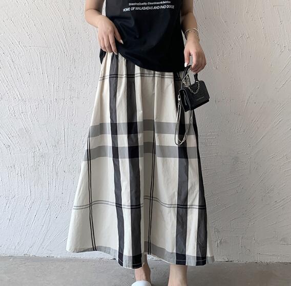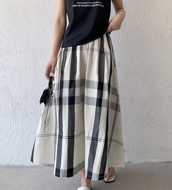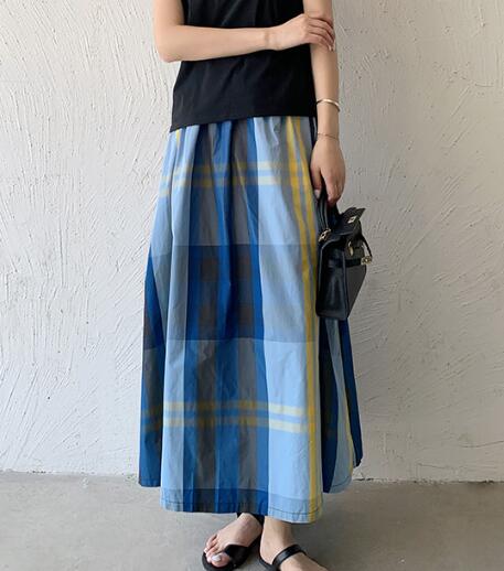 上品なチェック柄が魅力的なエー字ラインのロングスカートです。