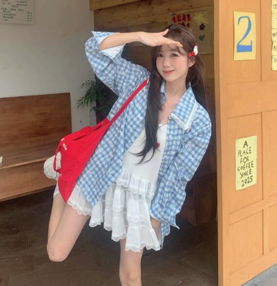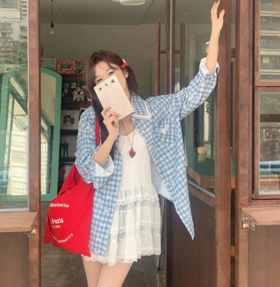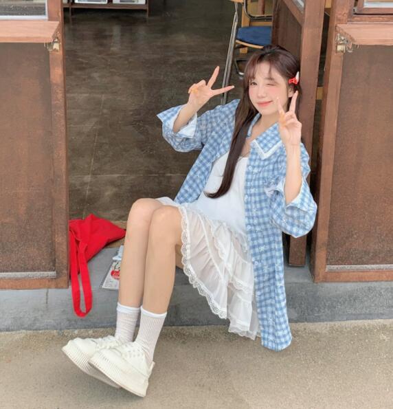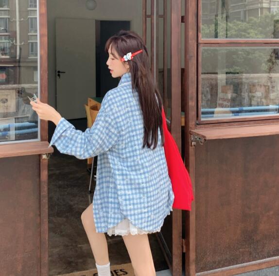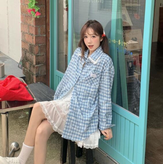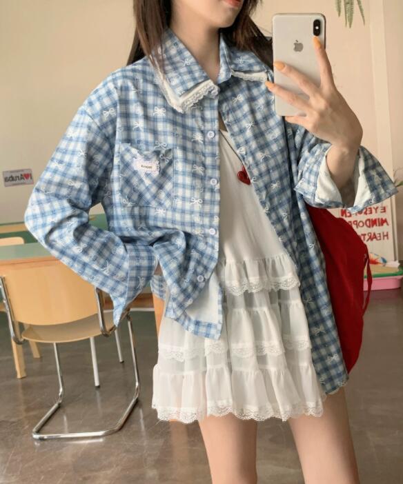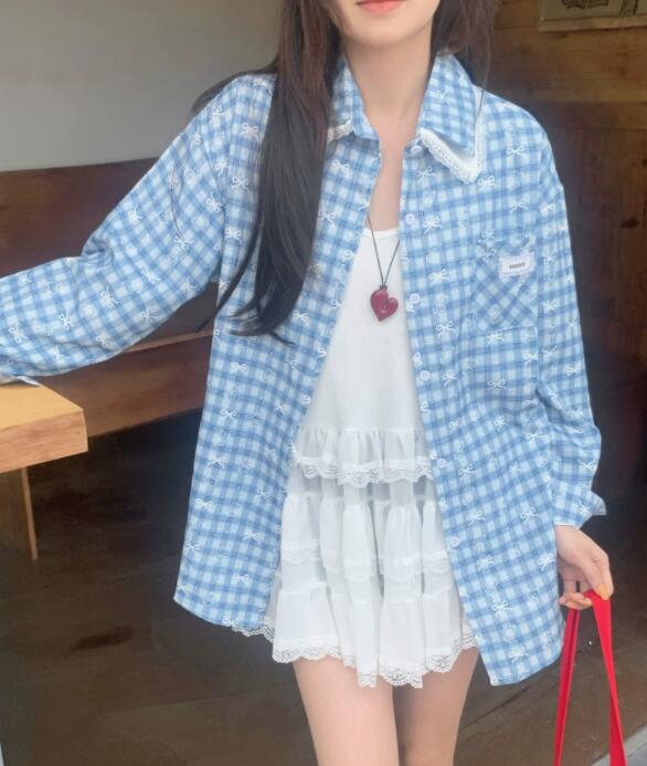 爽やかな水色チェック柄が魅力的な長袖シャツです。